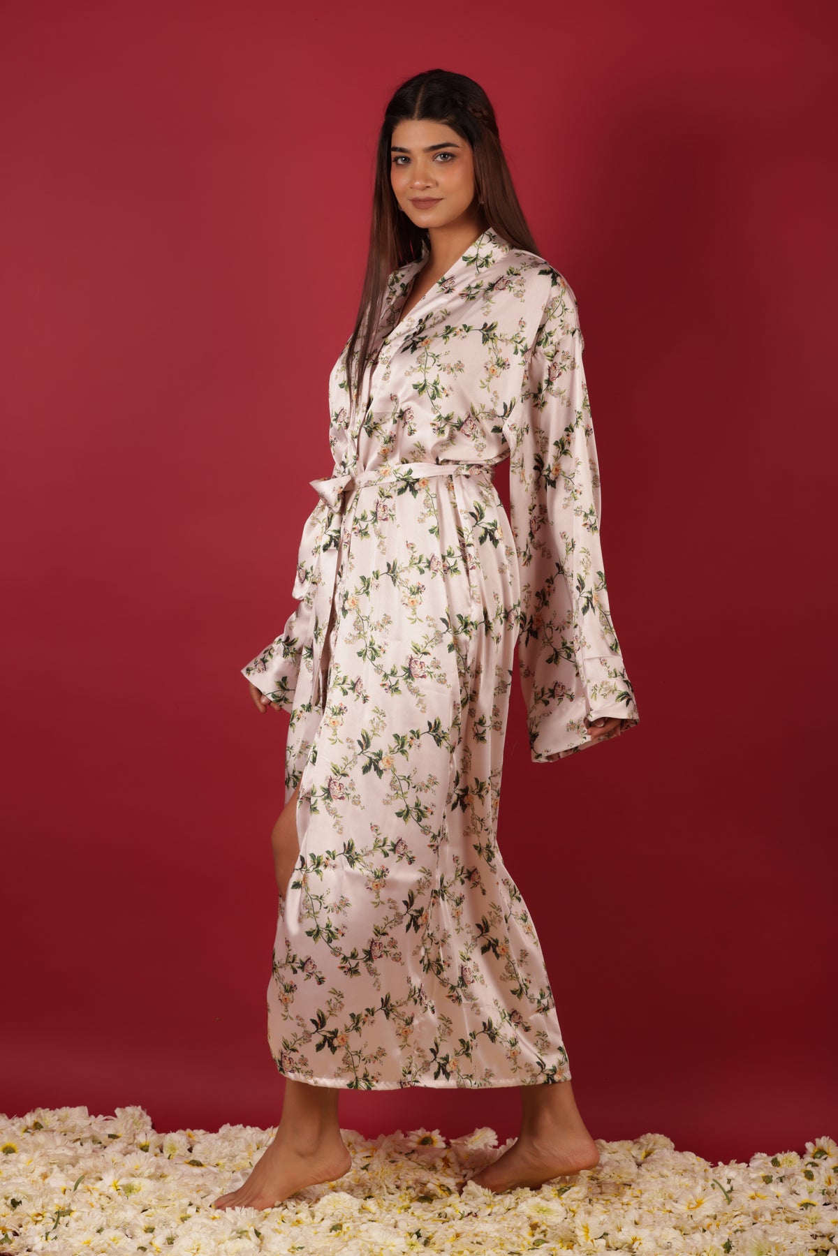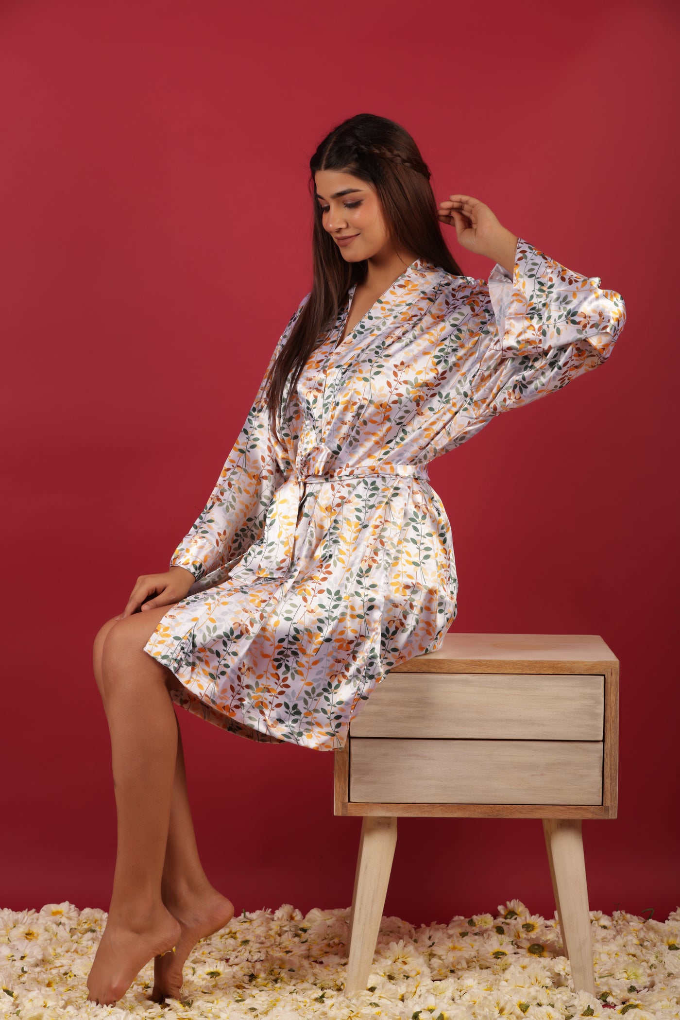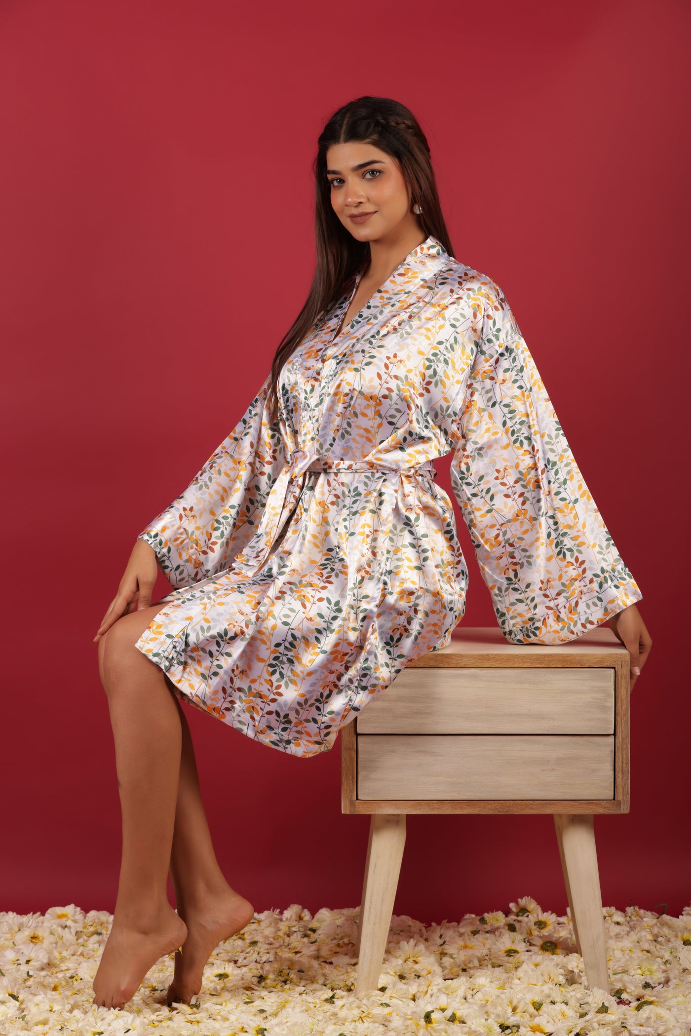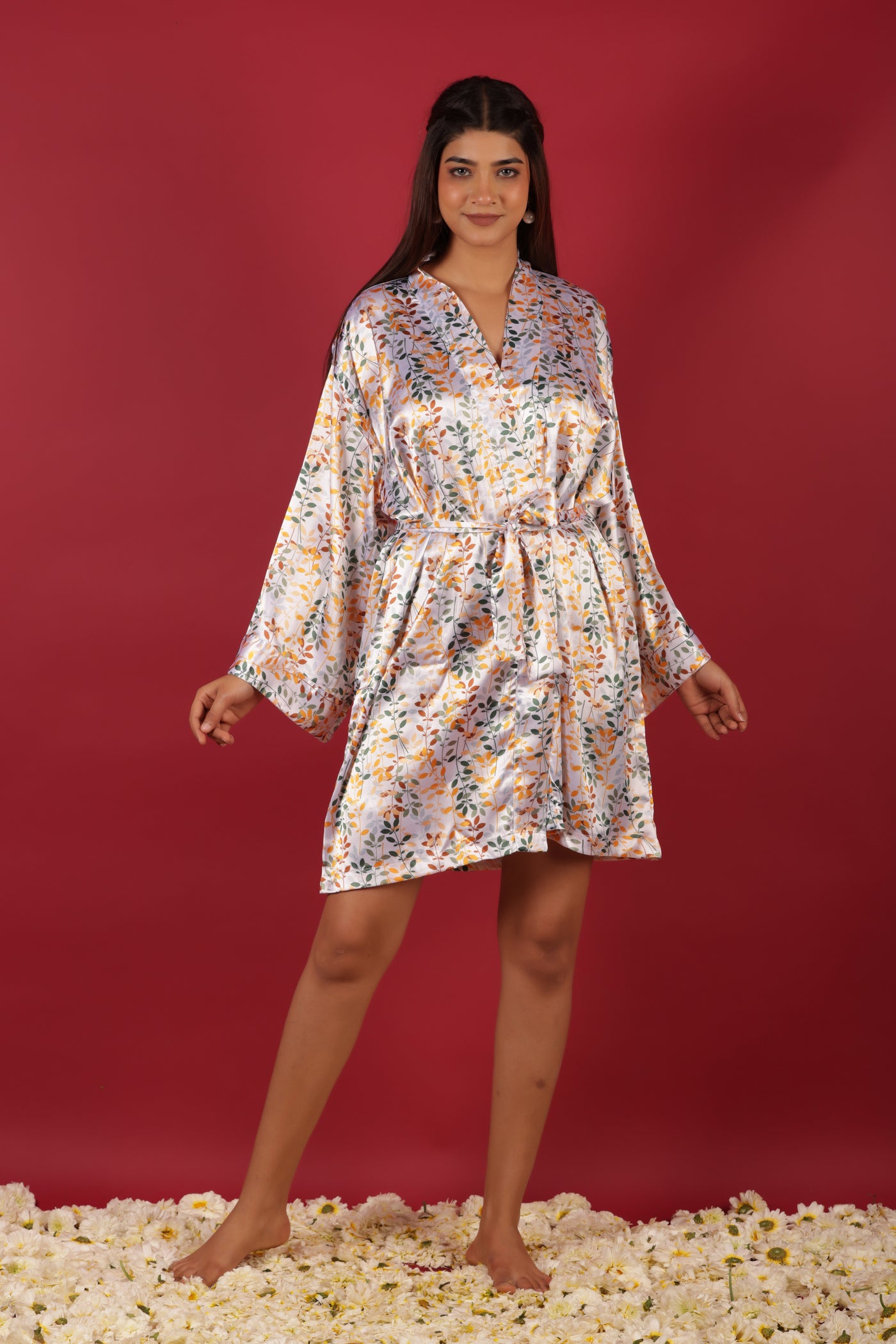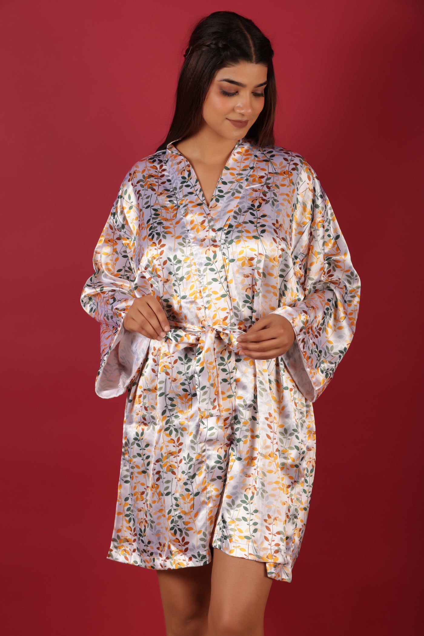 White Silky Satin Kimono Short Robe