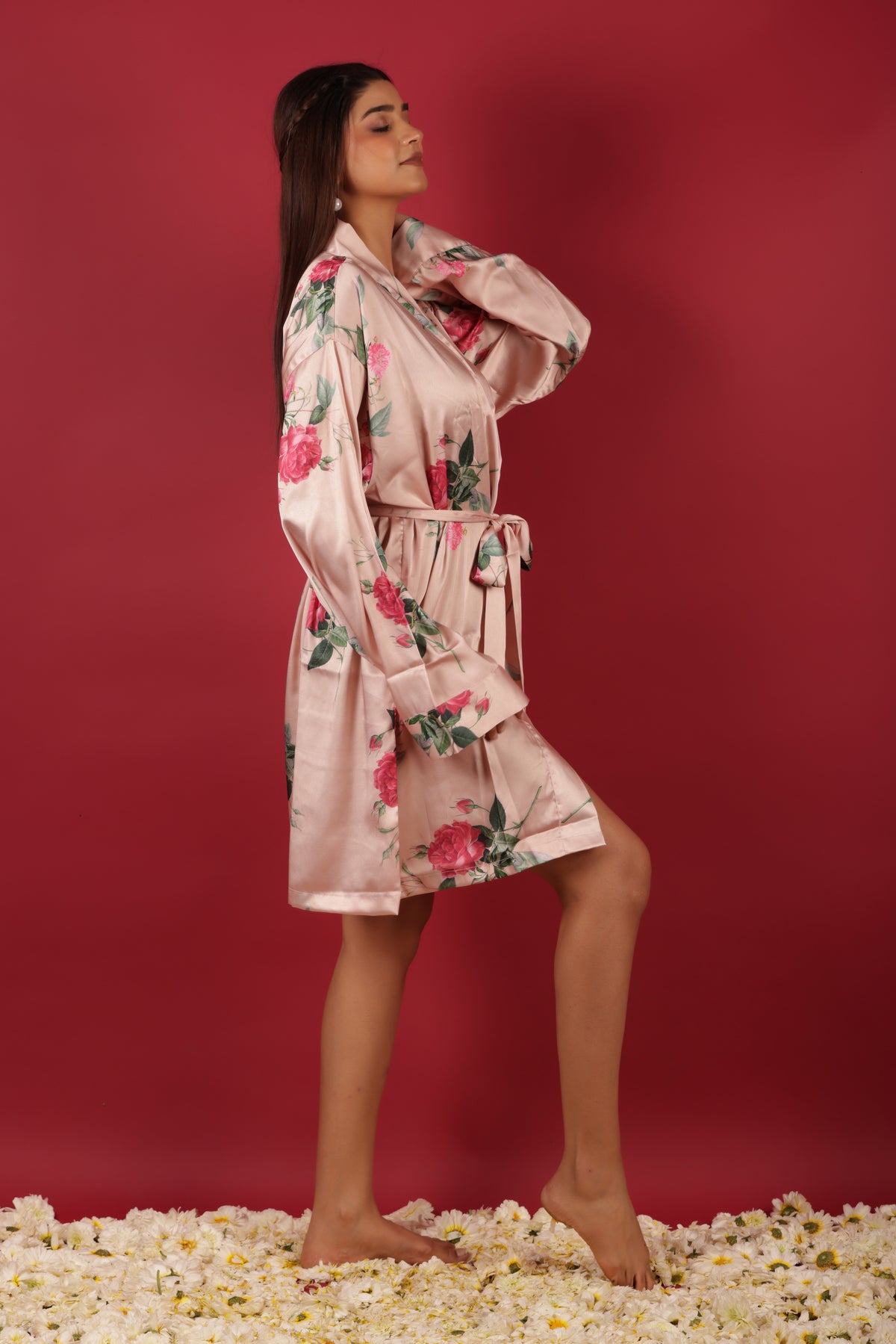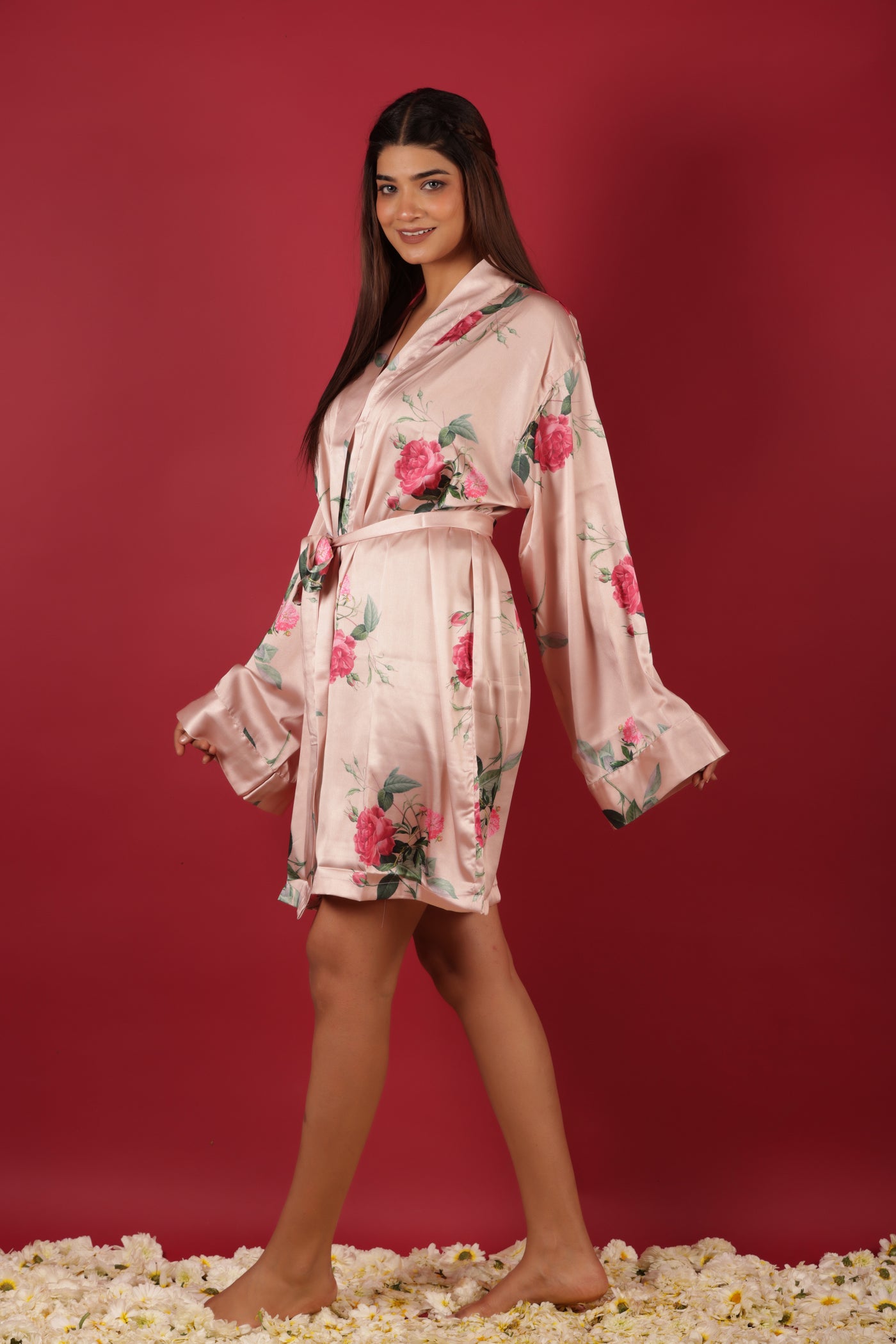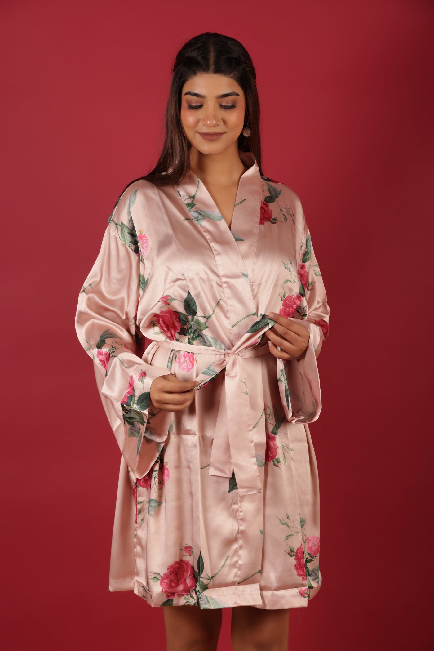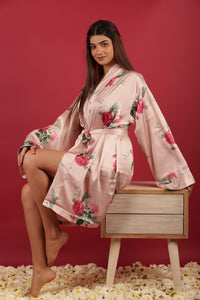 Bridal Party Probe Floral Printed Peach Bathrobe